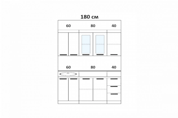 Высота верхних шкафов: 685 мм