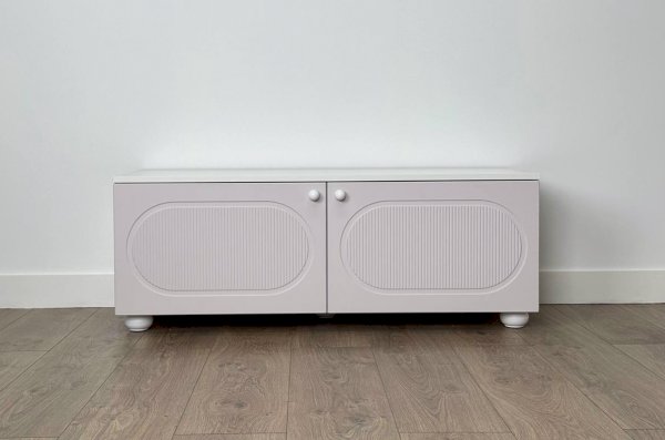 Тумба оснащена двумя распашными дверцами, за которыми располагается вместительное внутреннее пространство для хранения книг, игрушек, текстиля и других необходимых вещей. Такое решение позволяет скрыть содержимое и сохранить аккуратный внешний вид комнаты.