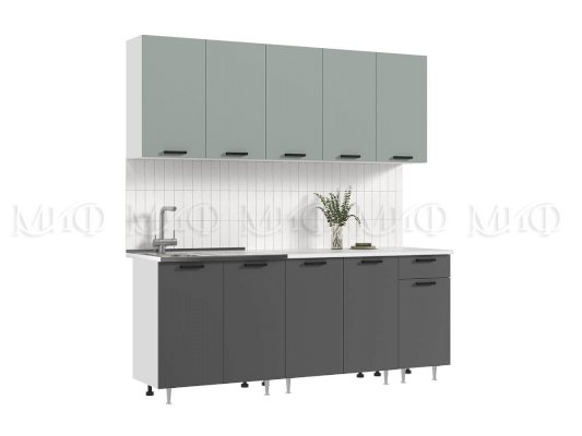 Кухонный гарнитур Рио New 2,0 м Сумеречный голубой/Графит (Миф)